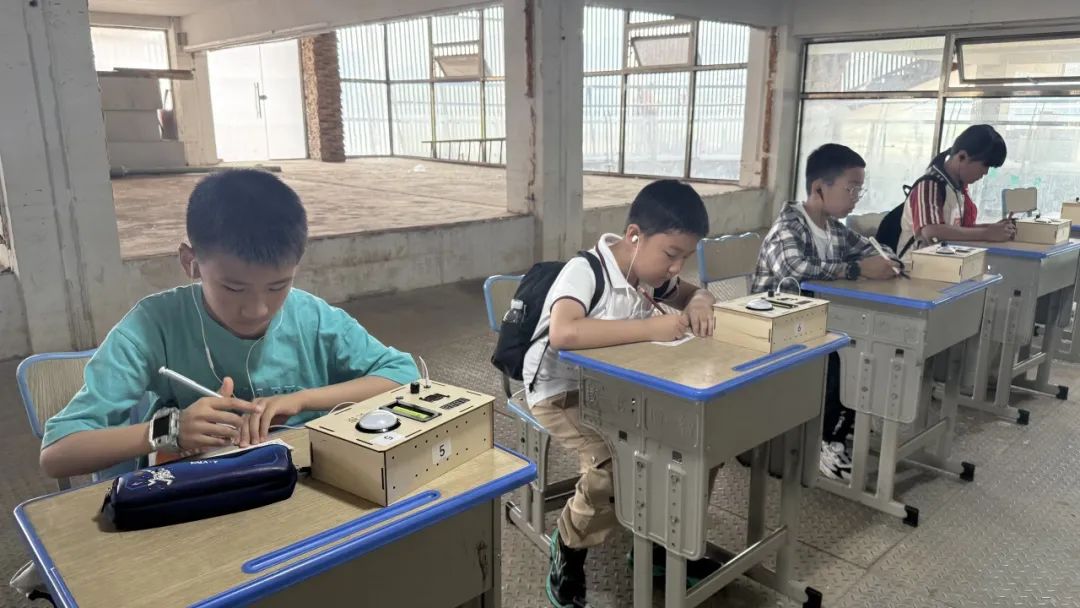 在摩尔斯电码抄收赛候场区,武汉市恒大城学校的选手们正低头默记编码规则。初二学生黄晓雯告诉记者,“这项比赛不仅能锻炼专注力,更让我明白密码通信在国家安全中的重要性,经过上百次练习,编码规则早已转化为指尖的肌肉记忆,现在听到‘嘀嗒’声,手指会本能地写出对应的字符。”